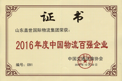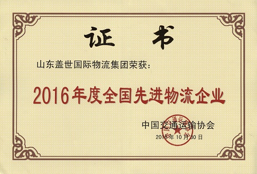 同期举行的全国先进物流企业授牌典礼上,现场公布了2016年度全国先进物流企业名单、2016年中国物流百强企业名单和2016最受全国先进物流企业欢迎的技术装备企业名单,对在物流产业中做出突出贡献的物流企业进行了表彰。继2014年后,盖世集团再次荣获“2016年度中国物流百强企业”“2016年度全国先进物流企业”两项殊荣。